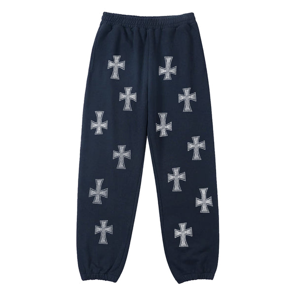 Unknown London Navy Red Cross Rhinestone Joggers